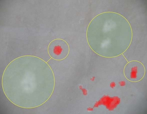 Using PEKAT VISION, defects in the leather are highlighted with a heat map. Early identification of defects and irregularities, before processing the material further, is an effective way to eliminate or minimize waste