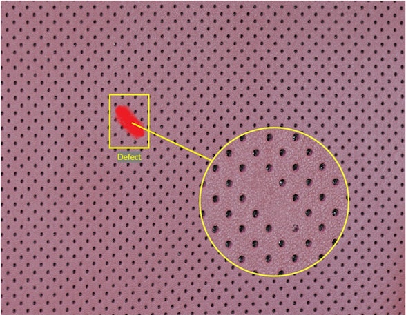 Defects in pattern on leather for a high-end car upholstery caused by a damaged tool are identified early with PEKAT VISION Anomaly Detector module
