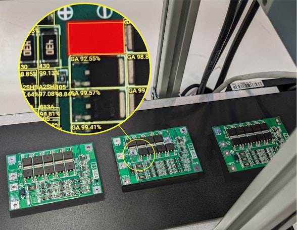 Detector and Classifier modules are ideal for verifying the presence and the state – OK/ NOK – of individual components on PCB boards. Over fifty individual components are inspected in the image above