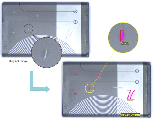 PEKAT VISION Surface Detector module detects and classifies multiple classes of defects that may occur during the production process of EV or other batteries, including scratches, dents, glue residues etc.