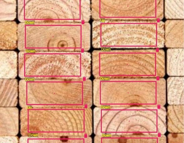 PEKAT VISION Object Detector module is used to identify the orientation of annual rings on wooden planks