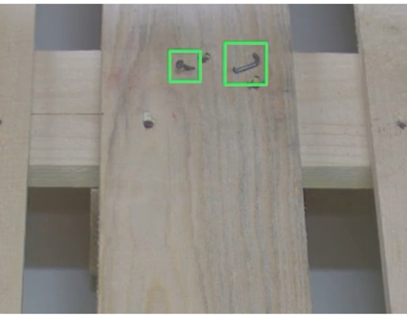 PEKAT VISION looks for insufficiently hammered nails that protrude from the pallet and can cause complications during transport, damage the transported goods or even lead to injury