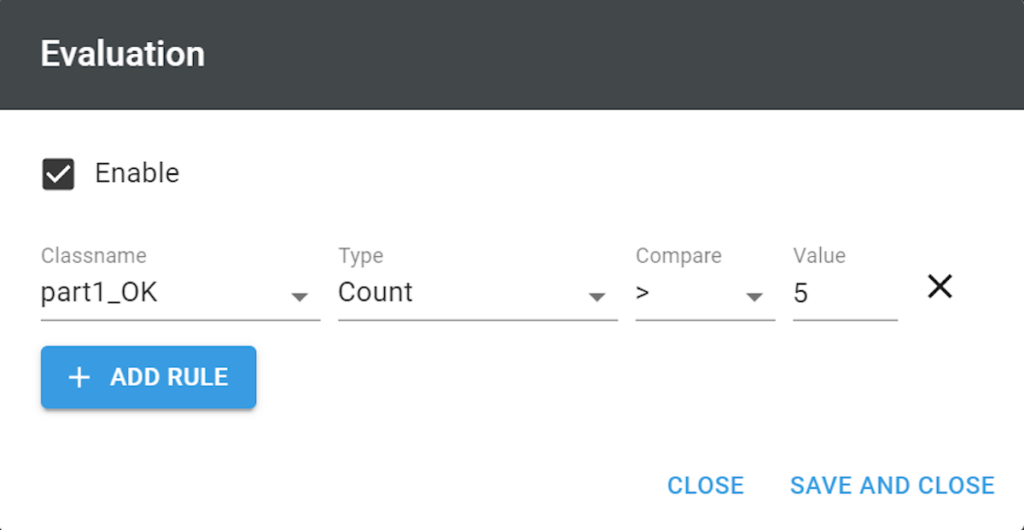 The Detector module is trained to detect objects in the picture. The process is simple – firstly select pictures for training, then draw rectangles around the object that you want to detect and then start the training. After the training is finished, set the evaluation criteria, i.e. define under which circumstances should PEKAT VISION mark the specific picture as OK or NOK.